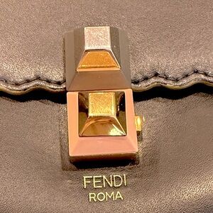 FENDI Vitello Liberty Scalloped Studded Small Kan Shoulder Bag in Black