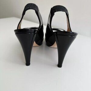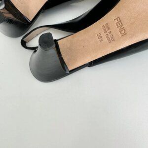 FENDI Women's Black Patent Leather Bow Platform Slingback Pumps Size 36.5 US 6.5
