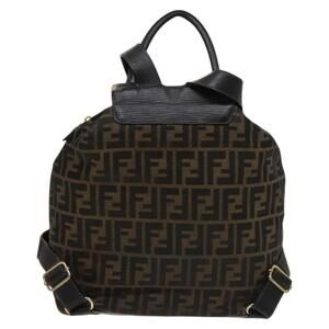 FENDI Zucca Canvas Backpack Black Brown Gold