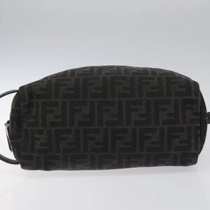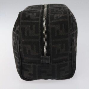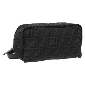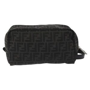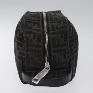 FENDI Zucca Canvas Clutch Bag Black Silver Auth
