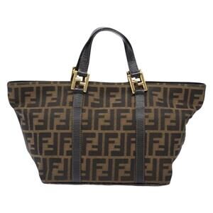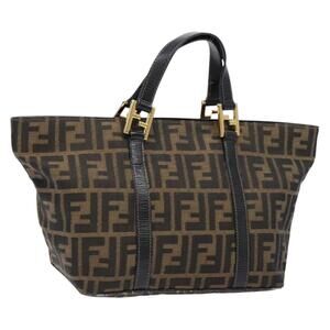 FENDI Zucca Canvas Hand Bag Black Brown