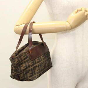 FENDI Zucca Canvas Hand Bag Black Brown Auth