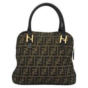 FENDI Zucca Canvas Hand Bag Black Brown Gold
