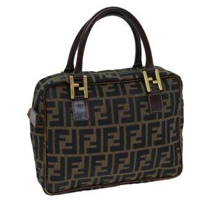 FENDI Zucca Canvas Hand Bag Brown Black Auth ac2930