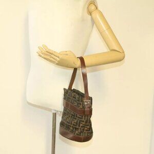 FENDI Zucca Canvas Hand Bag Brown Black Auth am808g