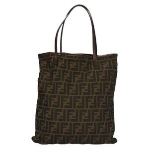 FENDI Zucca Canvas Hand Bag Brown Black Auth ep8370