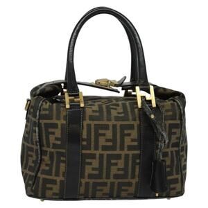 FENDI Zucca Canvas Hand Bag Brown Black Gold
