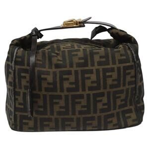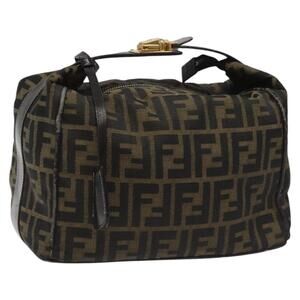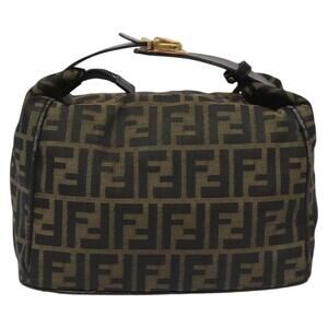 FENDI Zucca Canvas Hand Bag Brown Black Gold