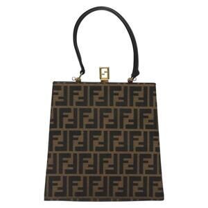 FENDI Zucca Canvas Hand Bag Brown Black Gold