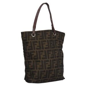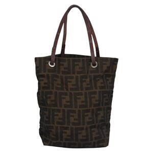 FENDI Zucca Canvas Hand Bag Brown Black Silver