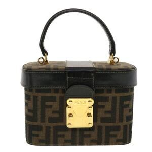 FENDI Zucca Canvas Hand Bag Nylon Brown Black