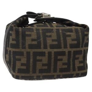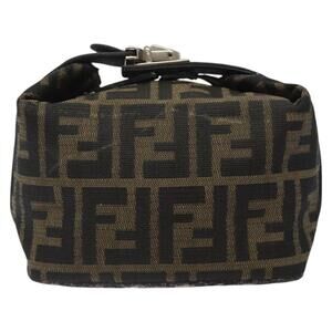 FENDI Zucca Canvas Hand Pouch Bagblack Brown Silver