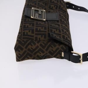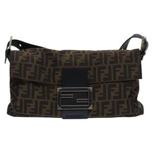 FENDI Zucca Canvas Mamma Baguette Bag Black Brown Gold 8bt180 8bt180