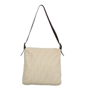 FENDI Zucca Canvas Mamma Baguette Shoulder Bag Beige Silver