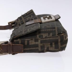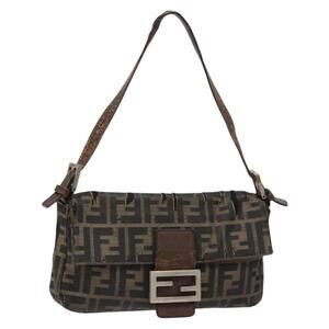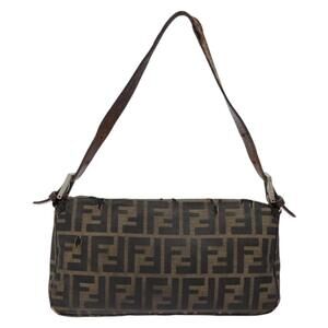 FENDI Zucca Canvas Mamma Baguette Shoulder Bag Black Brown