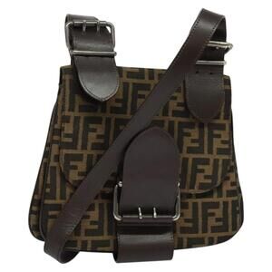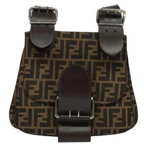 FENDI Zucca Canvas Mamma Baguette Shoulder Bag Brown Black