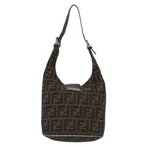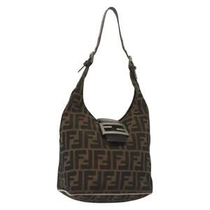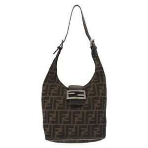 FENDI Zucca Canvas Mamma Baguette Shoulder Bag Brown Black Silver