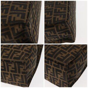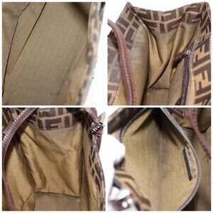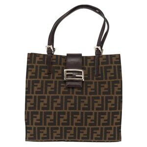 FENDI Zucca Canvas Mamma Baguette Tote Bag Black Silver Brown Auth 145493