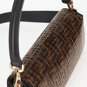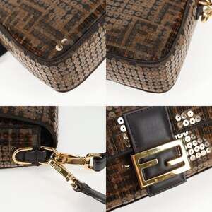 FENDI Zucca Canvas Mamma Bucket Shoulder Bag Sequin Brown Gold