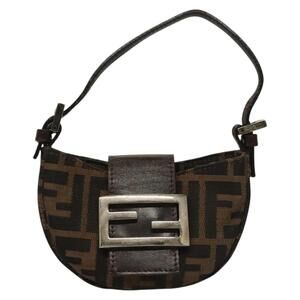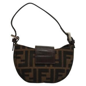 FENDI Zucca Canvas Mini Croissant Hand Bag Black Brown Silver
