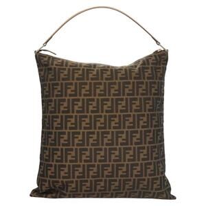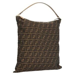 FENDI Zucca Canvas Shoulder Bag Black Brown