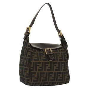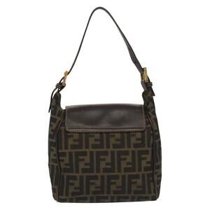 FENDI Zucca Canvas Shoulder Bag Black Brown