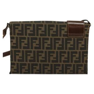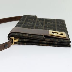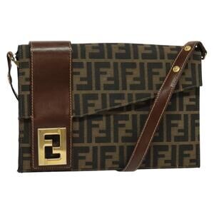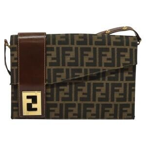 FENDI Zucca Canvas Shoulder Bag Black Brown Gold