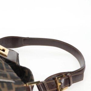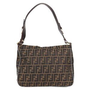 FENDI Zucca Canvas Shoulder Bag Black Brown gold Auth 129703