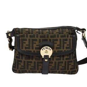 FENDI Zucca Canvas Shoulder Bag Brown Black Gold