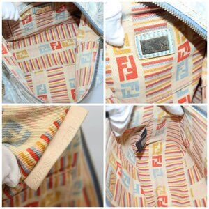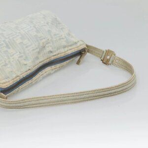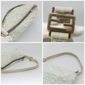 FENDI Zucca Canvas Shoulder Bag Denim Light Blue Gold Auth 140817