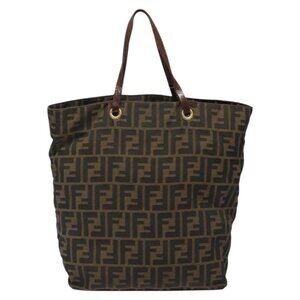 FENDI Zucca Canvas Tote Bag Black Brown Auth