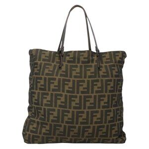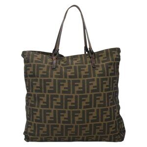FENDI Zucca Canvas Tote Bag Black Brown Auth