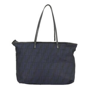 FENDI Zucca Canvas Tote Bag Gold Navy