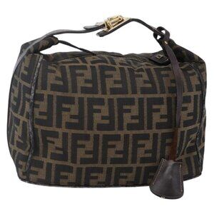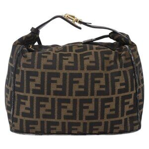 FENDI Zucca Canvas Vanity Hand Bag Black Brown Auth 150076