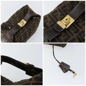 FENDI Zucca Canvas Vanity Hand Bag Black Brown Auth bs29458