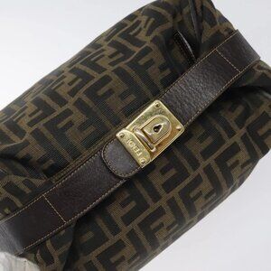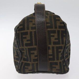 FENDI Zucca Canvas Vanity Pouch Black Brown gold Auth 131366