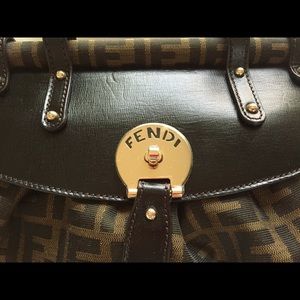 Brand new with tag still, no signs of wear or defects. Made in Italy. Comes with dust bag. Original authenticity card included. All of the signature gold tone hardware and every stud has the FF on it. Materials are canvas and leather. Color: Tobacco/Brown. Height (not including strap drop): 8". Length (at widest/bottom): 18.5" and length (at narrowest/top): 9.5". Strap drop: 6". Bag depth: 4.5 - 5" at bottom side.