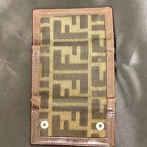 FENDI Zucca Tan Navy Canvas and Brown Leather Trim Snap Close Trifold Key Case