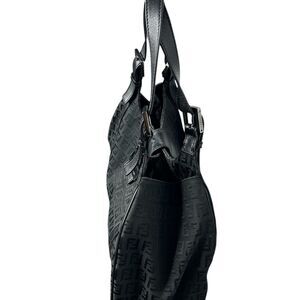 Indulge in the elegance of this exquisite pre-loved Fendi Zucca Tote Handbag in luxurious black FF monogram canvas fabric.