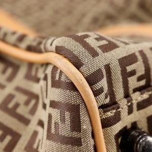 FENDI Zucchino Boston Bag 7VS014 Nylon Canvas x Leather Brown Double Unisex