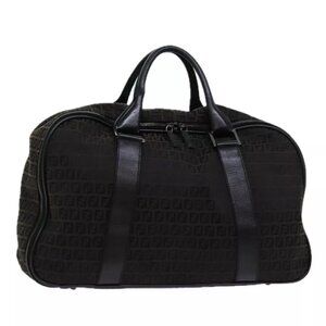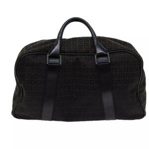 FENDI Zucchino Canvas Boston Bag Black Auth