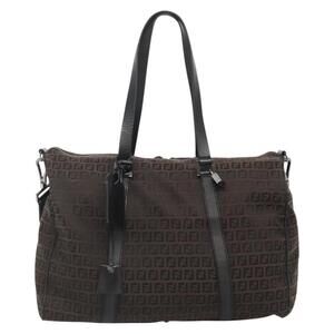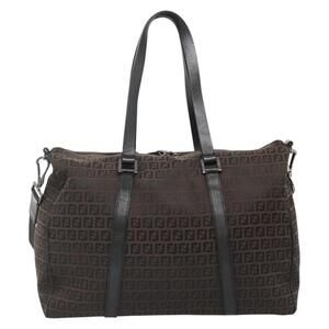 FENDI Zucchino Canvas Boston Bag Brown Black