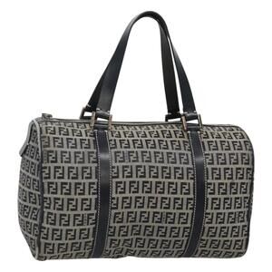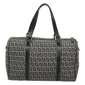 FENDI Zucchino Canvas Boston Bag Navy Silver