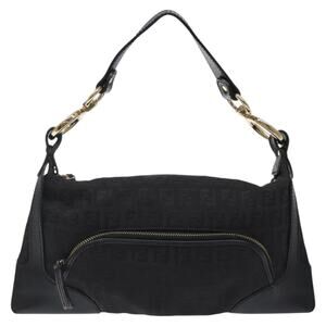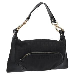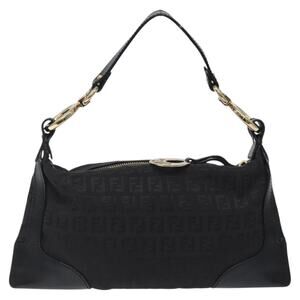 FENDI Zucchino Canvas Hand Bag Black Gold