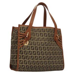 FENDI Zucchino Canvas Hand Bag Brown Gold Auth sw308