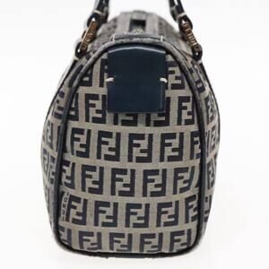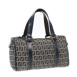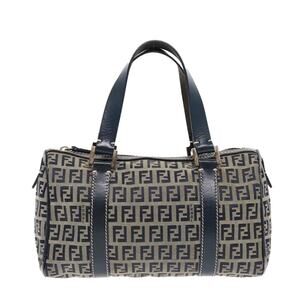 FENDI Zucchino Canvas Hand Bag Navy Silver