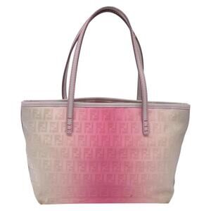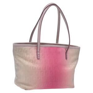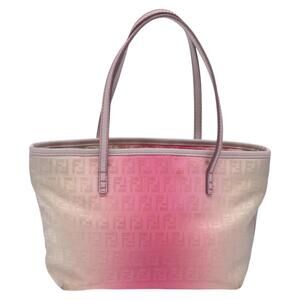 FENDI Zucchino Canvas Hand Bag Pink Silver