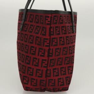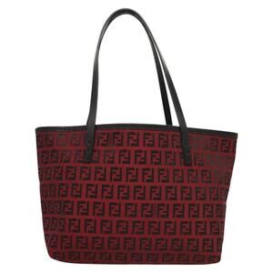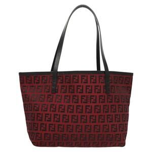 FENDI Zucchino Canvas Hand Bag Red Silver