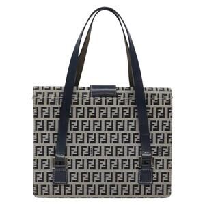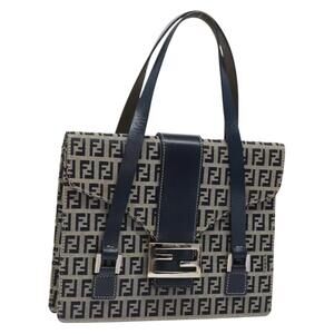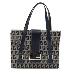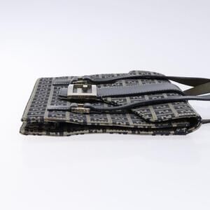 FENDI Zucchino Canvas Mamma Baguette Hand Bag Navy Silver