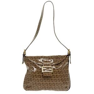 FENDI Zucchino Canvas Mamma Baguette Shoulder Bag Beige Gold